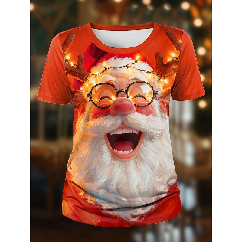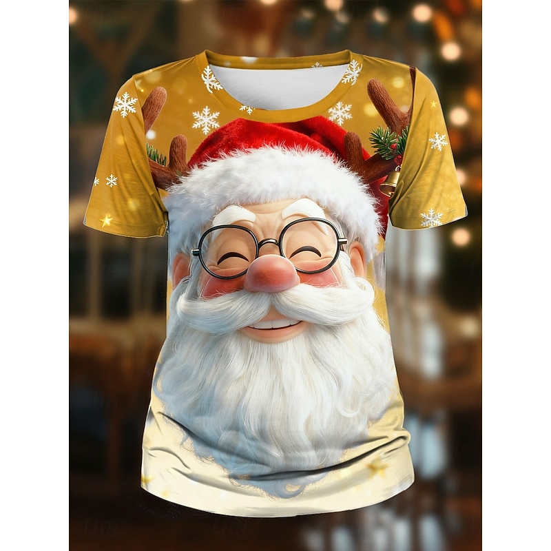 This Christmas Women's T Shirt Graphic Santa Claus Vintage modern Classic Short Sleeve Crew Neck Regular Tops Daily Print Black White Yellow Red Orange Fall Winter combines elegant design with practical functionality. Every detail has been carefully considered to ensure you get the best possible experience. The excellent construction means this product will serve you well for years to come.