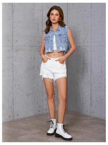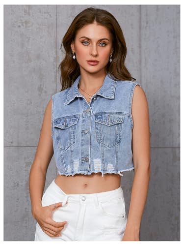 Why Choose Verdusa Women's Ripped Raw Hem Sleeveless Button Up Crop Denim Vest Jean Outerwear?