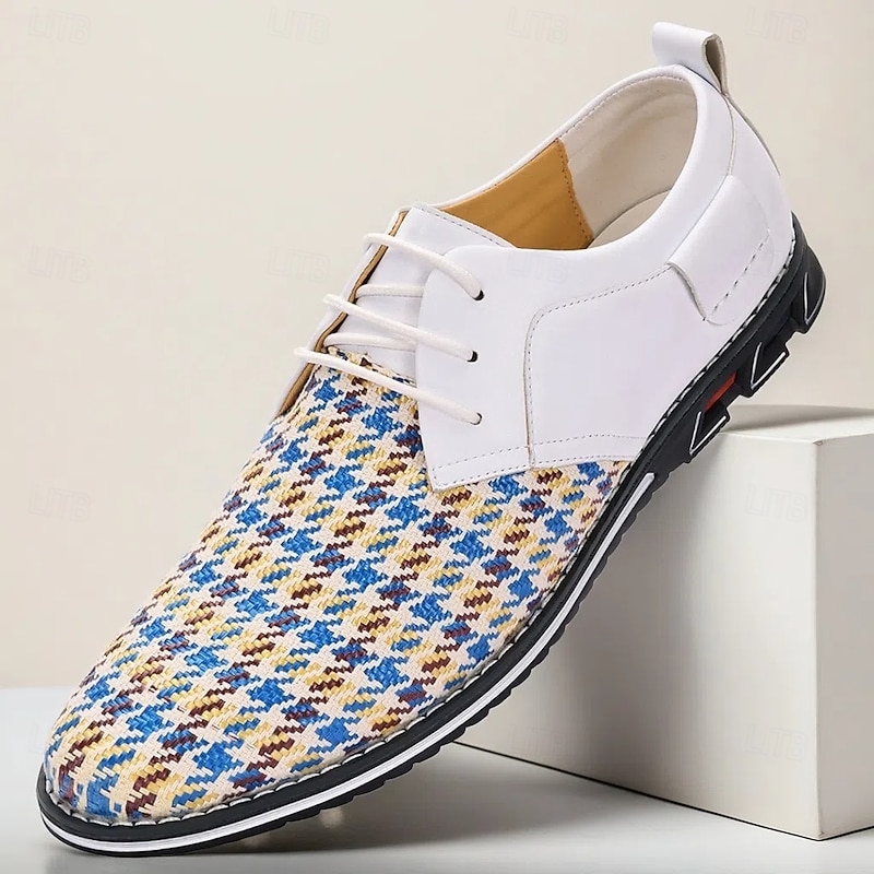 More information about Woven White and Blue Men's Lace-Up Shoes Featuring Breathable Material and Trendy Design - Ideal for Casual Outings Summer Events and Everyday Wear