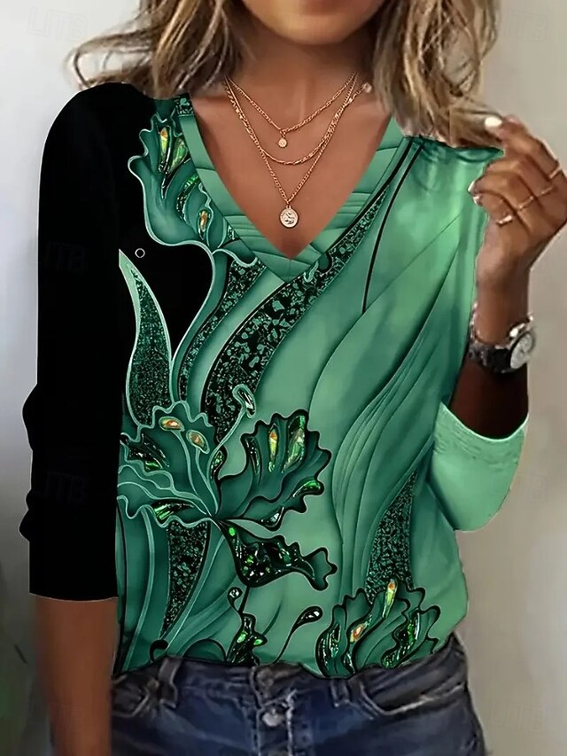 This Women's T Shirt V Neck Long Sleeve Tunic Floral Graphic Plants Vintage chic Classic Regular Tops Daily Print Purple Orange Brown Green Summer Spring Fall combines elegant design with practical functionality. Every detail has been carefully considered to ensure you get the best possible experience. The finest construction means this product will serve you well for years to come.