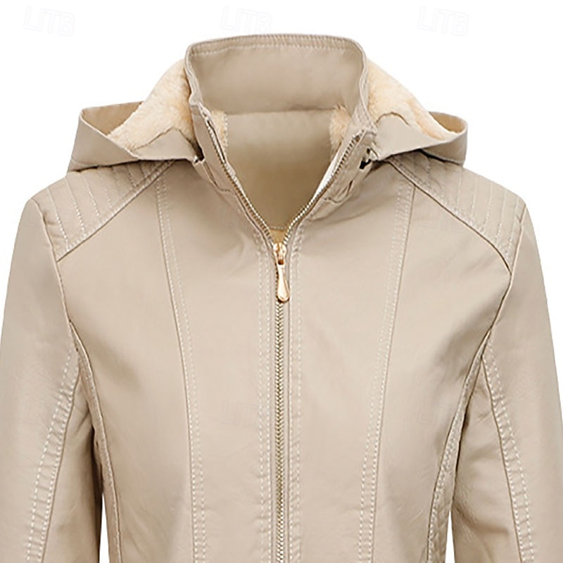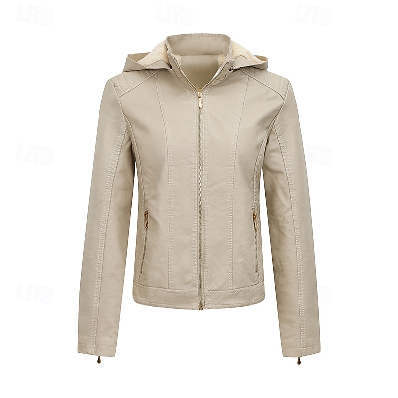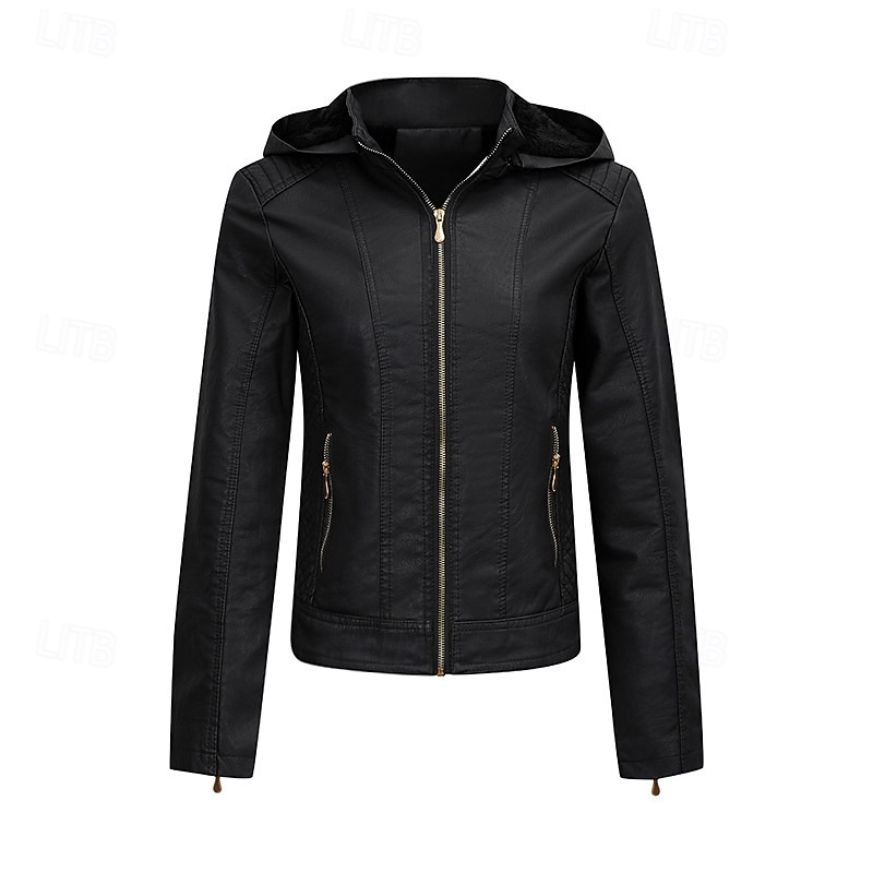 This Women's Faux Leather Jacket Warm cushy Zipper Pocket Casual Solid Color Vacation Street Casual Daily Wear Regular Hooded Regular Fit Long Sleeve Outerwear Black Wine Blue Fall Winter combines elegant design with practical functionality. Every detail has been carefully considered to ensure you get the best possible experience. The excellent construction means this product will serve you well for years to come.