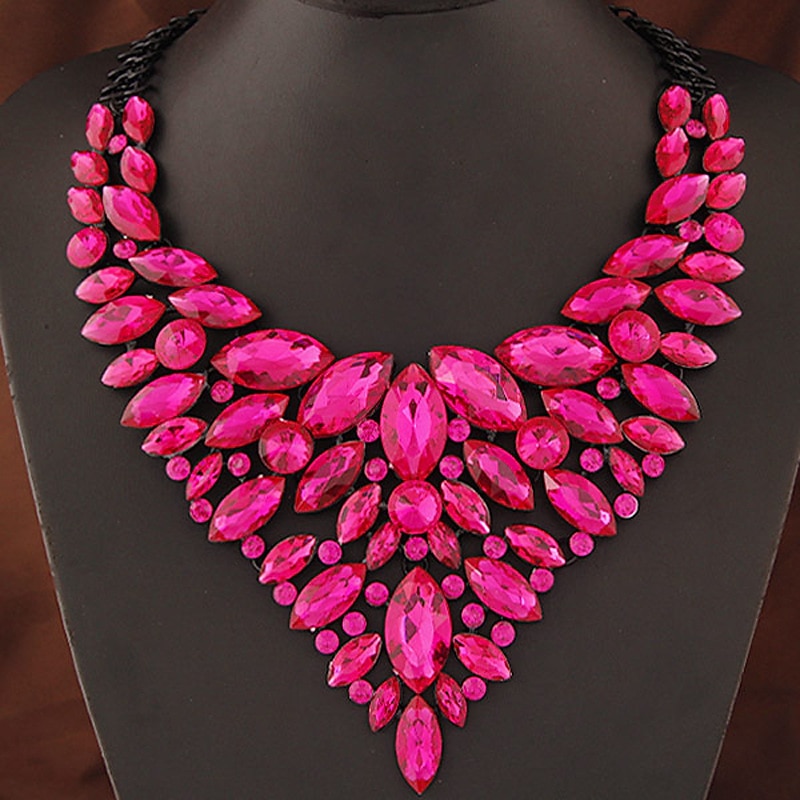 Highlights [Fabric and Material] : Crafted from durable alloy, this statement necklace showcases a luxurious arrangement of dazzling crystals and multi-faceted gemstones. The robust alloy material ensures longevity while maintaining a lightweight feel, adding a touch of glamour to every ensemble. [Design Highlights] : This retro-inspired necklace features a exclusive alphabet shape design with a mix of marquise, round, and oval-shaped stones. The cascading silhouette of the necklace is enhanced by its intricate pattern, making it an artistic and eye-catching accessory. The vivid royal blue gemstones paired with a contrasting black chain make it a bold statement piece. [Occasions] : Ideal for a range of special occasions such as weddings, birthday parties, evening gatherings, or Christmas celebrations. This statement necklace effortlessly elevates any outfit, making it perfect for both festive events and elegant evening wear. [Styling and Fit] : Designed for a women's fit, the necklace gracefully drapes over the neckline. Its oversized artistic style adds a luxurious touch to any ensemble, enhancing your personal style with minimal effort. [Size and Recommendations] : The necklace is available in a one-size-fits-all option, suitable for various necklines and styles. It's designed to complement a wide range of fashion preferences and outfits, from casual party looks to sophisticated evening attire. Perfect for everyday use. supreme materials and excellent craftsmanship ensure long-lasting durability.