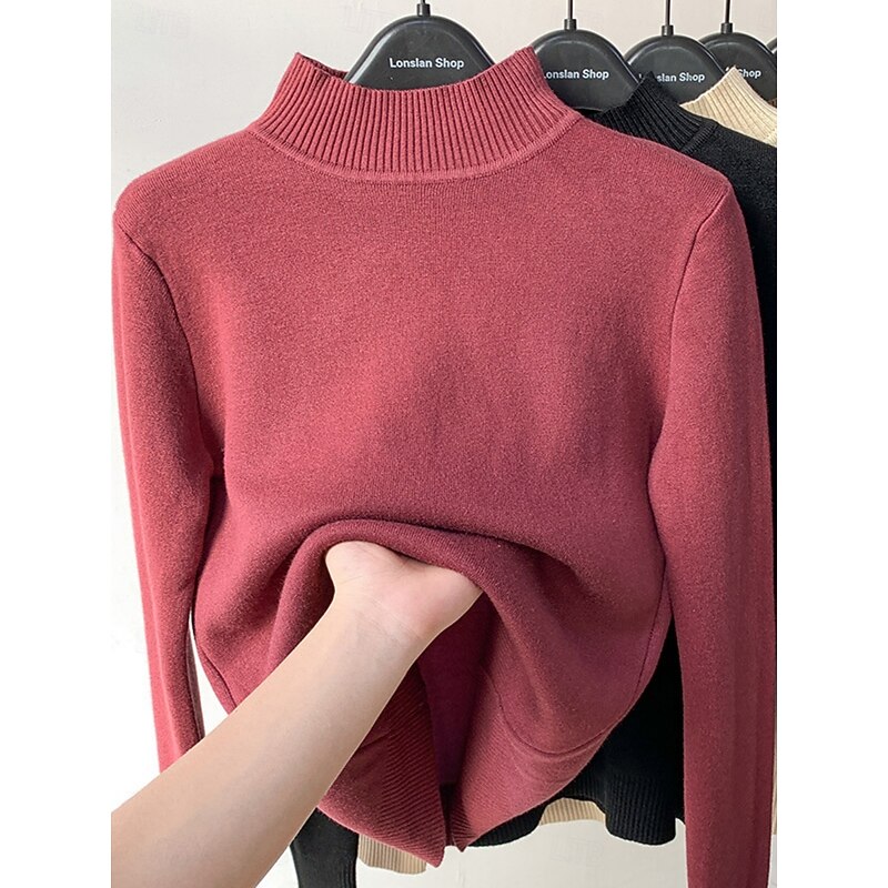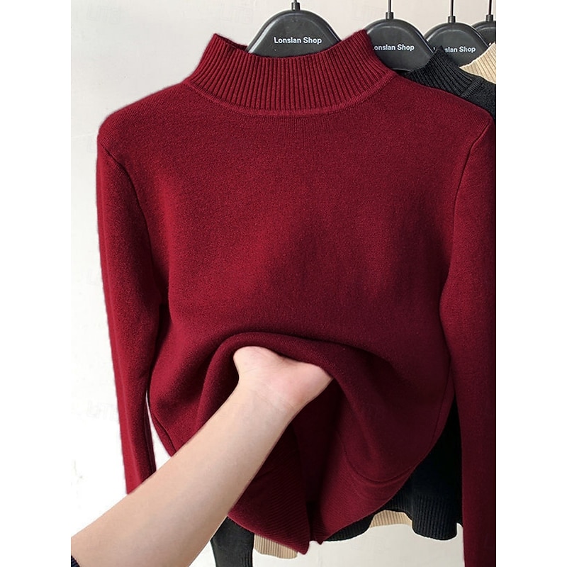 More information about Women's Blouse Solid Color Stylish Casual Long Sleeve High Neck Regular Tops Daily Black White Wine Red Blue Spring Fall Winter